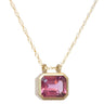 A vivid 2.5ct emerald-cut pink tourmaline set in a substantial 14k yellow-gold bezel. The stone’s rich rose color and crisp, mirrored facets give the piece a soft radiance, while the bezel’s clean, architectural lines keep it modern and understated. Suspended from an 18" chain, it sits with an elegant, easy drop that layers beautifully or stands on its own. Made in Los Angeles in solid 14k gold.