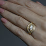 This curved diamond band is designed to pair seamlessly with the 1.06 carat marquise double halo ring, following the lines of the marquise so the two pieces fit together effortlessly. Set with tapering inverted natural white diamonds totaling 0.32 carats, the arc of the band adds a bright faceted texture that enhances the silhouette of the center ring without overpowering it. On its own, this band pairs beautifully with many styles of solitaires and adds a sculptural sparkle to any stack. Together, the two pieces create an extraordinary engagement ring and wedding band pairing. Crafted in solid 18k yellow gold and hand made in Los Angeles. Available in size 6.5. If ordering another size please allow two weeks for delivery.