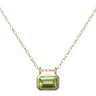 Made in 14k yellow gold this beauty features a 7x5mm emerald cut peridot bezel set in a solid satin finished basket. The slider pendant hangs from an 18" wheat chain. This piece layers beautifully and dazzles with a spark of chartreuse color. Hand crafted in Los Angeles.