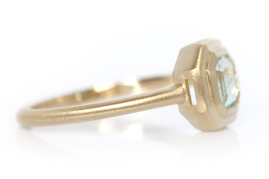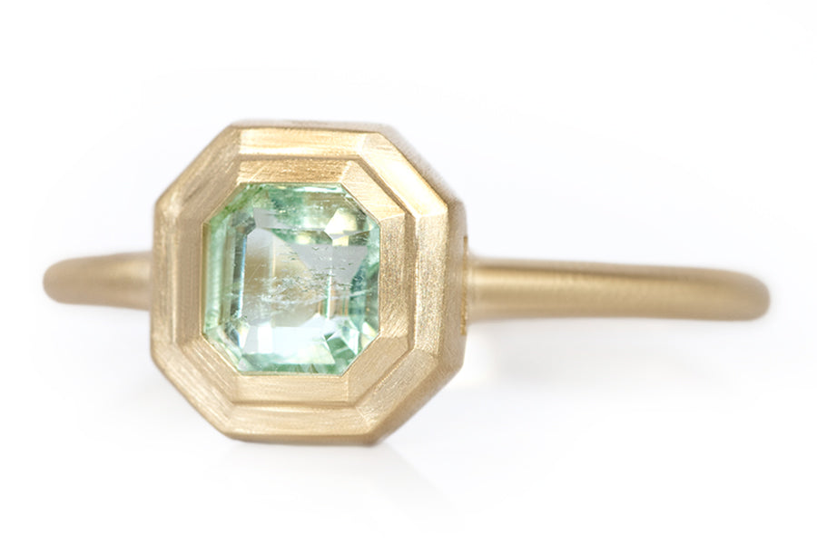 Stepped Cut Pale Emerald Ring